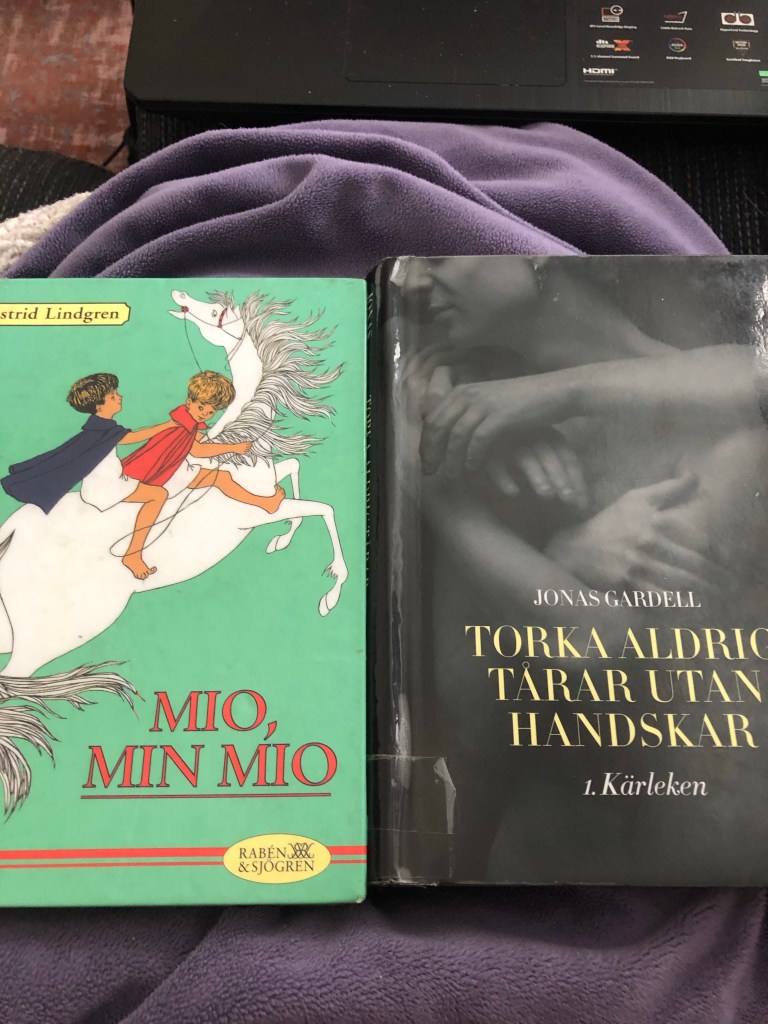 Här har det varit tyst i några dagar, för att berätta vad jag har gjort det senaste dagarna kan vi sammanfatta det så här. Läst ,pluggat, kollat serier. Som sagt det har ju varit väldigt mycket men jag kan säga att jag nu ligger väldigt bra till. I veckan så har jag läst de två romanerna som jag skulle göra i kursen. Läs en bok av en kvinnlig författare och en bok av en manlig författare och det har jag nu gjort. Läste ”torka aldrig tårar utan handskar” av Jonas Gardell och ”Mio min Mio” av Astrid Lindgren.