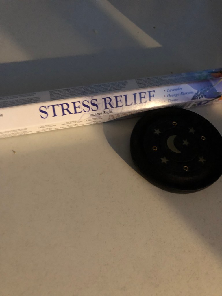 Här är det jag köpte. Stress relief är en rökelse som jag sedan december förra året börjat använda den bredvid är en rökelsehållare. Jag har märkt att denna rökelse hjälper mig mot min ångest och oro så här är ett till verktyg för mig nu när jag tänker sluta med mina antidepressiva. Hon har fler rökelser men detta är vad jag köpte. Sedan satt vi och pratade en del och det här är väl en del i min förändring som jag går igenom nu. Det är spännande och mer om min spirituella sida kommer. Vet att ni är några som vill läsa om det så nu delar jag med mig lite till. På vägen hem sen så kom det nya insikter och tankar. Det var en värdefull pratstund för mig ❤