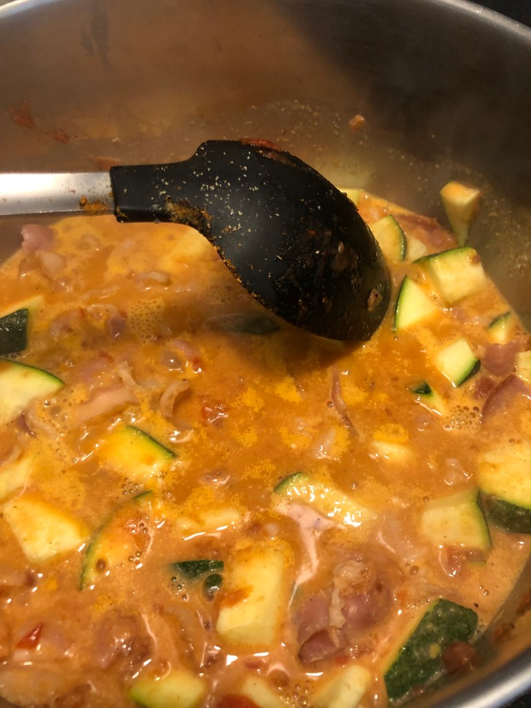 Igår var det fredag och vädret var sådär, regnade en del på förmiddagen så var inne och läste en stund. Blev uppehåll på eftermiddagen så var ut en liten stund, men det blåste rätt kallt. På kvällen sedan lagade jag baconsås med zucchini och makaroner. Hittade zucchini för 5kr handlade bla det och annat som började ta slut. Blev en del mat igår så nu har jag mat för idag och imorgon tror jag. Även om jag gillar att laga mat så är det alltid skönt med rester så jag kan göra annat.