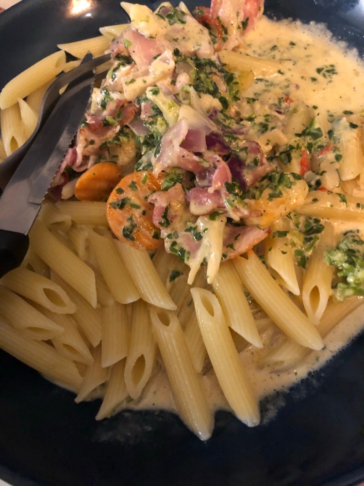 Igår lagade jag mat efter att ha varit på sjukhus i några dagar så var detta riktigt gott. Tro mig jag är tacksam för hjälpen men sjukhusmaten kan vara rätt smaklös. Här har vi iaf en bacon och svampsås med kryddor, lök ock spenat. Det gula är inte curry utan gurkmeja. Och till detta hade jag coscous, såsen är gjord på grädde. Och det bästa är att det blev rester över till ikväll😍